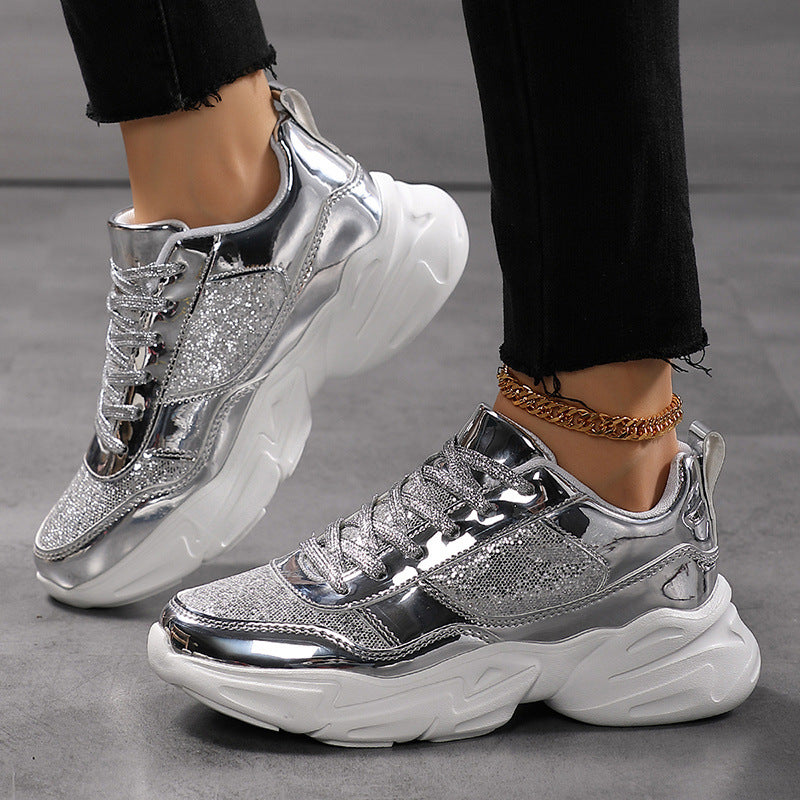 Deze lichtgewicht chunky sneakers met glitterfinish tillen elke outfit naar een hoger niveau – van festival tot streetlook.